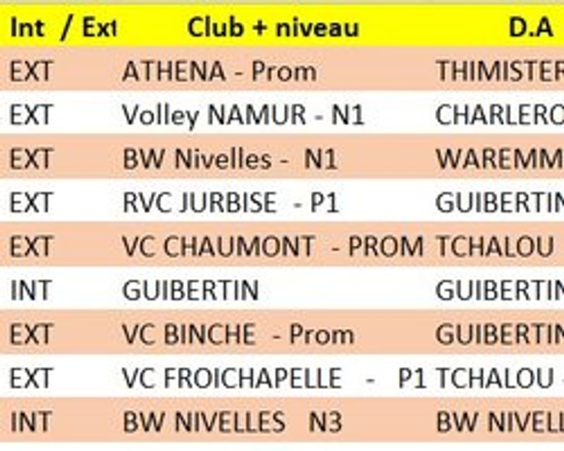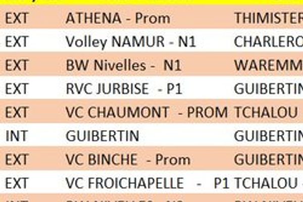 | COLLIN Théo - licence 119485 | 27/08/2007 | Namur Volley N2 | BW Nivelles N1 |